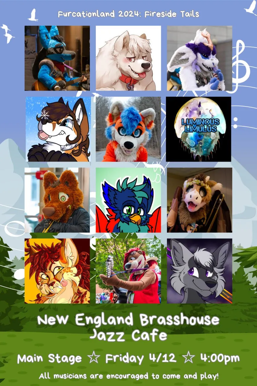 Avian Meetup!BIRD! BIRD! BIRD! BIRD! New England Brasshouse Jazz CafeFor your listening enjoyment, the musicians from around New England are here to perform tunes for all you campers of Furcationland! |
