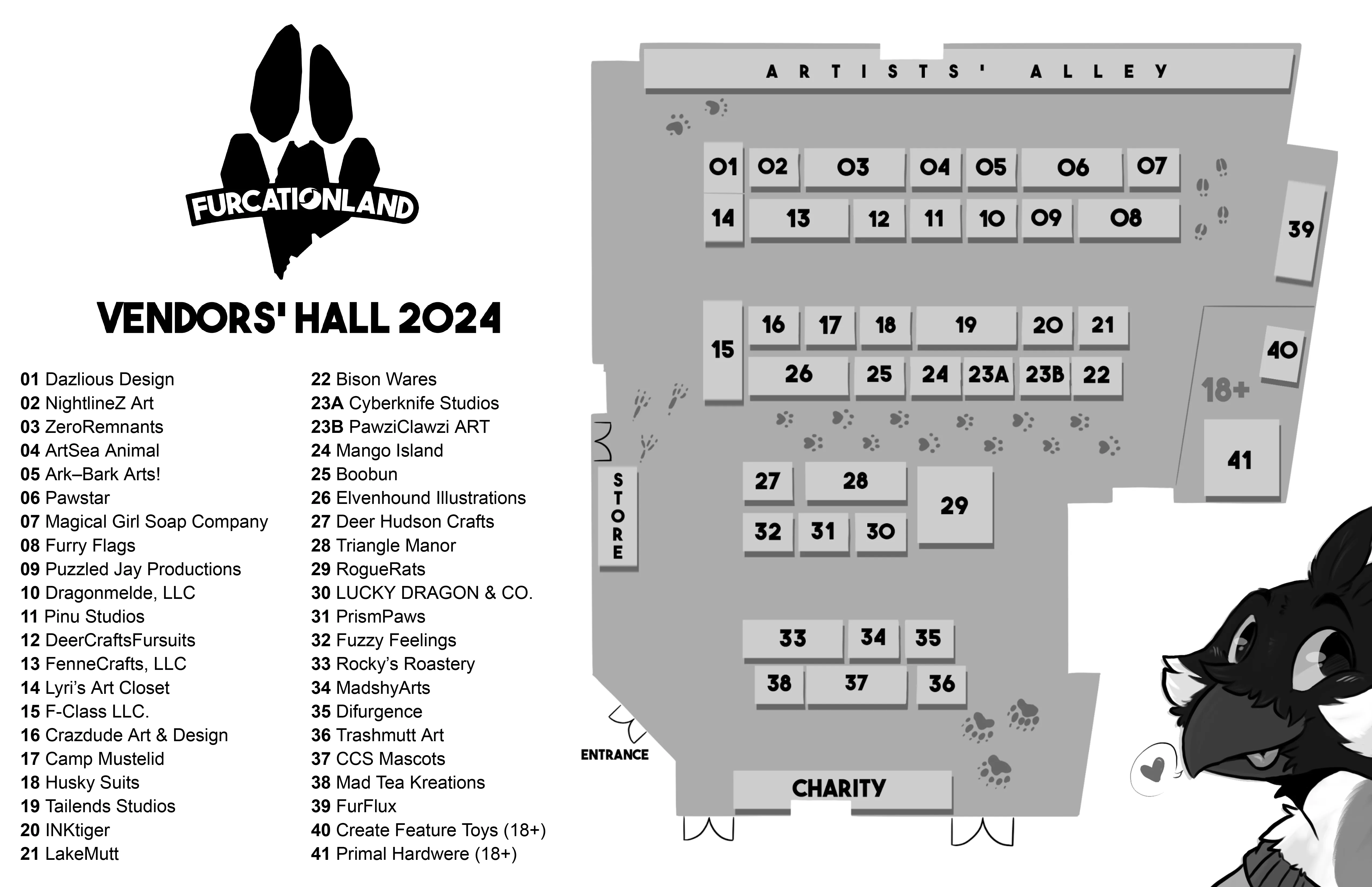 Dealers' DenFirst 15 minutes for Sponsors and Supersponsors only. CharityFirst 15 minutes for Sponsors and Supersponsors only. How To Start A Furry ConventionHave you ever wanted to start a furry convention but didn’t know where to begin? Come by this panel and our experienced panelists will discuss the ins, outs, and what-have-yous of starting a con. Artists' AlleyFirst 15 minutes for Sponsors and Supersponsors only. |